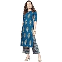 Star Fashions Women's Rayon A-Line Kurta & Palazzo/Ladies Kurta & Palazzo/Kurta & Palazzo Set/Kurti & Palazzo/Block Print Kurti & Palazzo